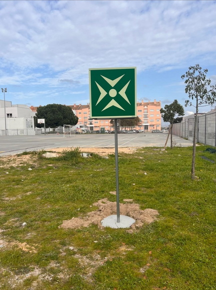 Está localizada perto dos campos desportivos, garantindo visibilidade para todos. Trata-se de uma medida de segurança fundamental para organizar pessoas em caso de incidentes ou catástrofes. Esta infraestrutura tem como objetivo assegurar que todos utilizadores da escola se reúnam num local seguro e designado durante uma situação de emergência.