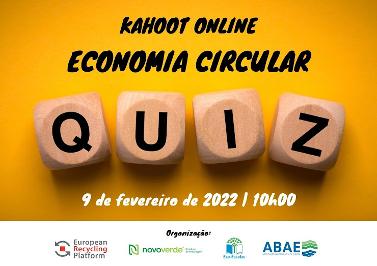 A Associação Bandeira Azul da Europa (ABAE), o programa Eco-Escolas, a ERP Portugal e Novo Verde convidam os estudantes e professores das Eco-Escolas para um jogo online em direto sobre Economia Circular. O Quiz vai decorrer no dia 9 de fevereiro às 10h00 através da plataforma Zoom. Inscrição gratuita para estudantes e professores Eco-Escolas em: https://forms.gle/T7UWGawpW6F72eop9
